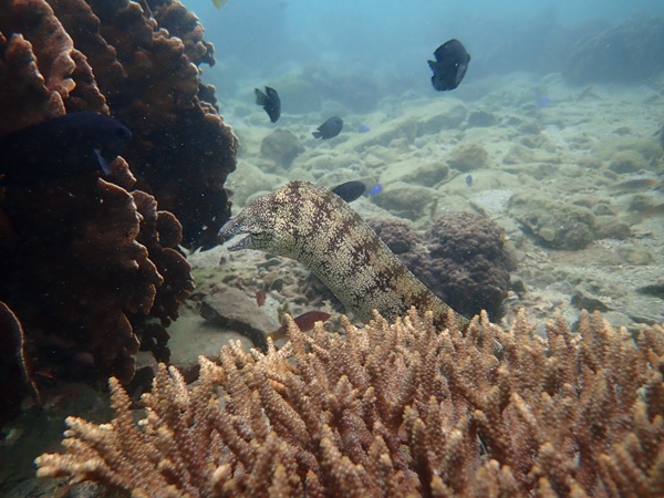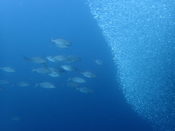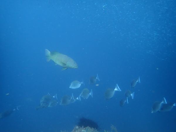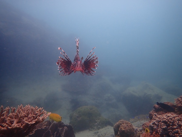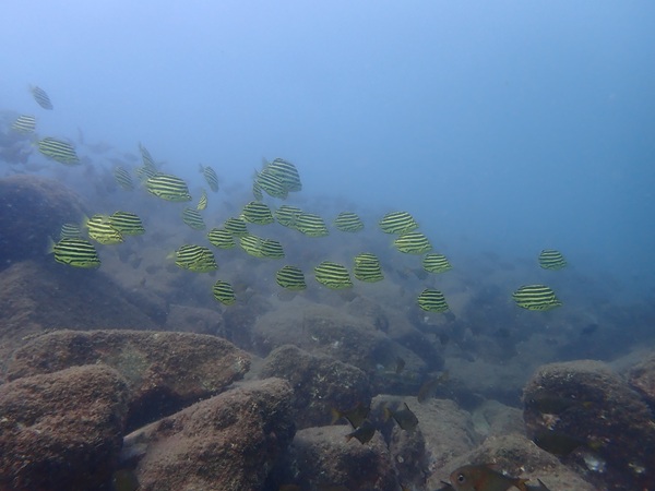 本日の天候は雨のち晴れとなりました。海況は北より風波がたちました。透視度は10m以上とよく水温は24℃前後とまだ高めで推移しています。