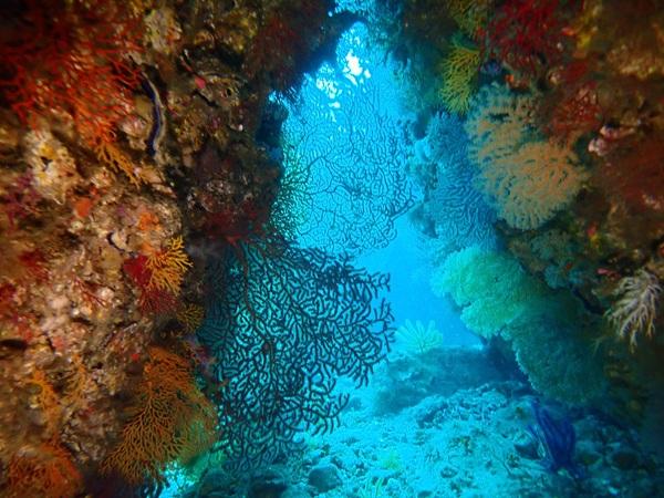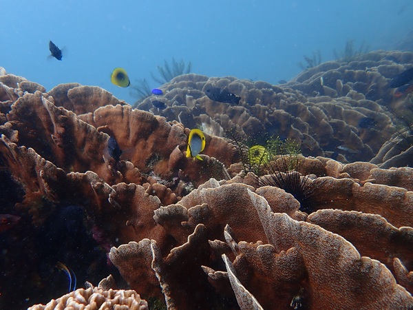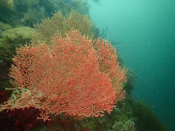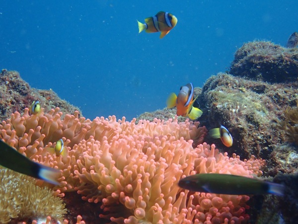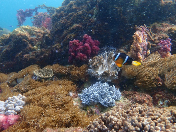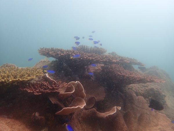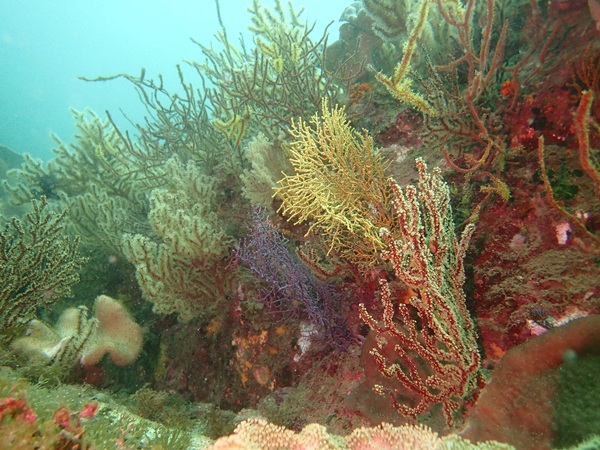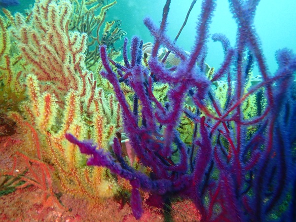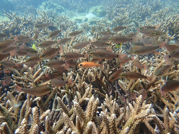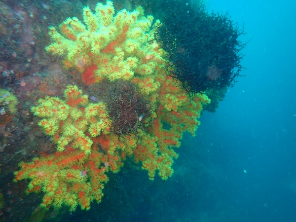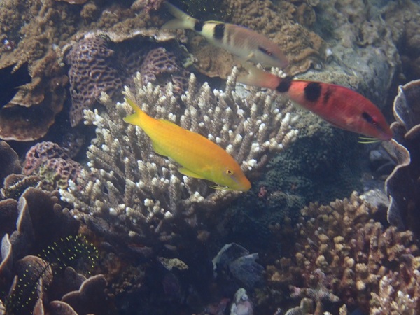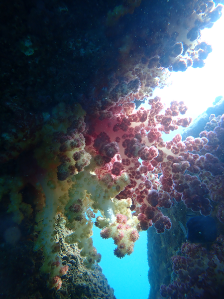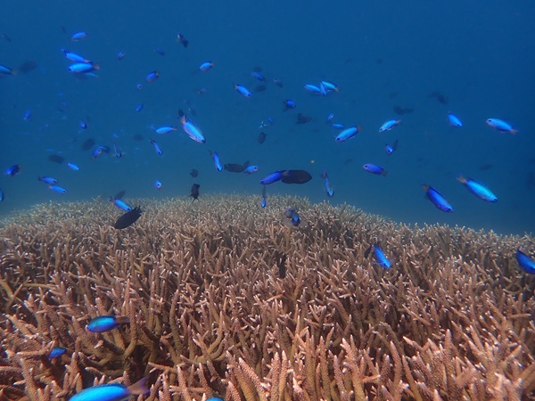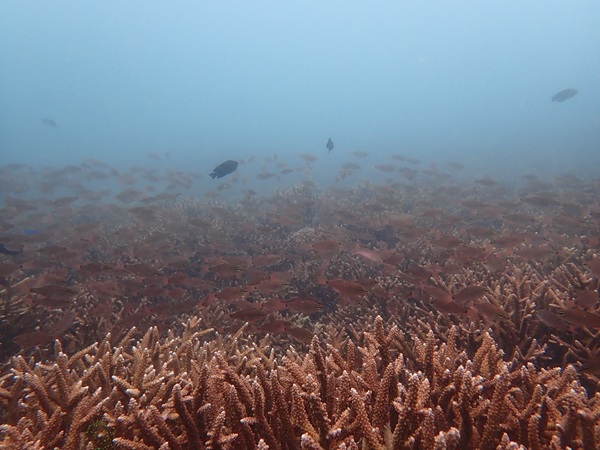 内湾の浅場に居ついているヘコアユの幼魚は変わらず見られています。光りが十分に入っていたのでソフトコーラルもきれいに見られました。