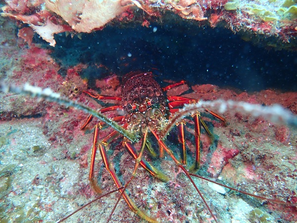 本日の天候は曇り空が広がりました。海況は南の風により風波がたちました。透視度は10m前後と通常時で水温は18℃前後と変っていません。