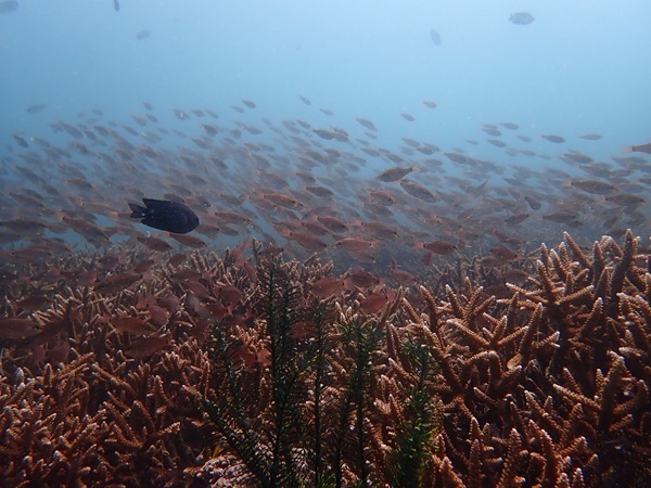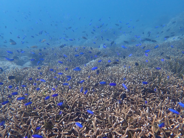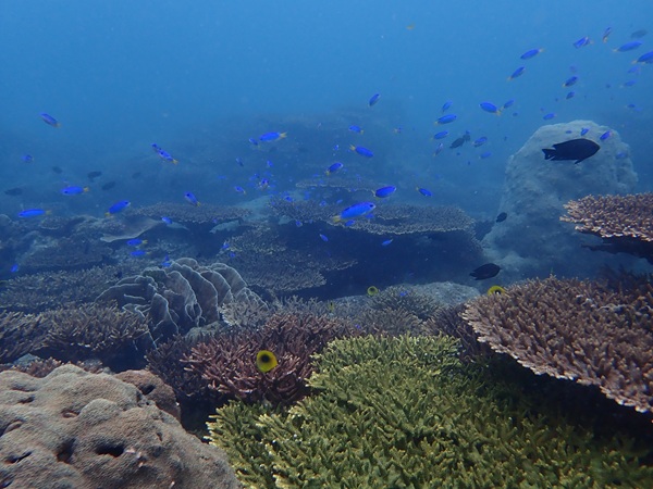 今回は体験ダイビングと付き添いダイブということで平碆の宝であるコーラルガーデンで潜ることにしました。体験ダイビング二回目ということで安定していたので通常通りのコース取りを様々な種類のサンゴを楽しむことができました。