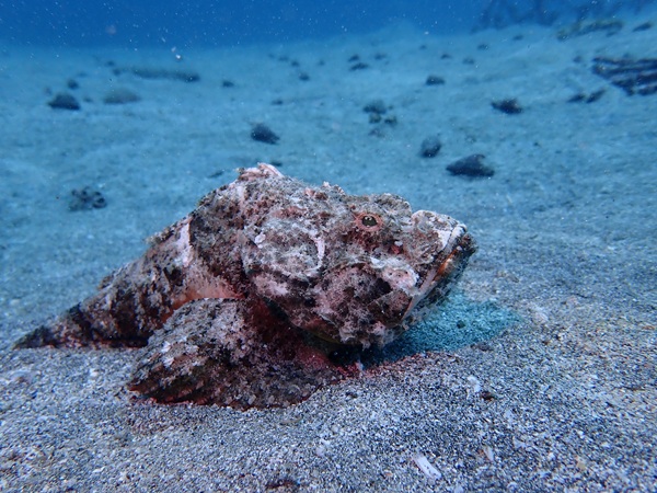 本日の天候は日差しの強い秋晴れが広がりました。海況は凪となり最高のダイビング日和となりました。透視度は10m未満と少し落ちていて水温も21℃前後まで下がってきました。