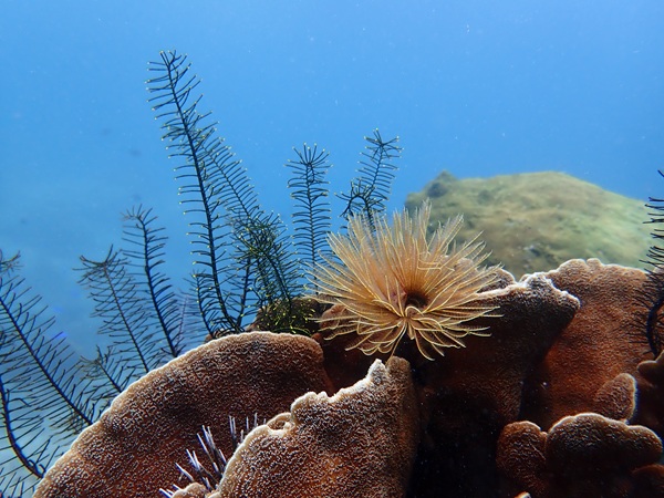 大潮周りで色々な生物が放精、放卵をしています。その影響で若干濁りが発生していますが透視度は10m前後と通常時です。秋の気配が一気に強まってきましたがベストシーズン真っただ中なので興味がある方はお早めにご連絡ください。ご来店お待ちしております。